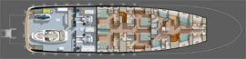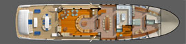 In addition to the multi-use main deck space there is an expansive flybridge dedicated to guest relaxation in all weather conditions.