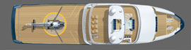 ![]() ![]() ![]() It's not unusual to be able to land a helicopter on a 42M yacht. It is, however, more of a challenge to provide a below-decks hangar without folding the rotor blades and still have landing space for your buddy to drop by too. That was the design brief for this exceptional vessel, one which showcases a comfortable and spacious interior as well as providing it's owner with room for all his really cool toys. And as ever, we've continued to push performance boundaries, utilizing our fuel-efficient technology to provide increased space in the interior for far more than just additional fuel storage.