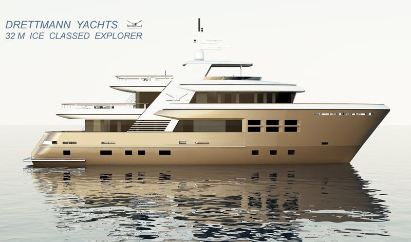 ![]() Drettman Explorer Yacht 32m Designed in cooperation with Focus Yacht Design, who provided styling and interior design, the new Drettmann Explorer line has been designed for those who not only appreciate cruising and urbane lifestyle at select ports, but also relish the adventurous aspects of sailing. With her classically compact exterior but extraordinarily spacious interior, this 'Tardis' of a yacht is ideal for skippers who wish to indulge their sporting inclinations to the full. The striking appearance alone makes this vessel predestined for voyages of discovery on the high seas, a luxury base for diving sessions and jet-ski excursions. Accordingly, she offers ample room for tender and surfboards, diving equipment and water toys. The strong masculine silhouette, accentuated by sturdy side straps, underlines the distinctive look of the 27 to 45-metre yachts. But despite all their masculine charm, the wide range of interesting features means there is no need to forego comfort or luxury on board a DEY in any way. A guaranteed highlight for guests is the large, pleasant dining and lounge area with built-in barbecue at the stern, which affords a fabulous view over the water. This yacht also boasts yet another fascinating first for the DEY class: a spacious beach club with a further bar, lounge area, sauna and steam bath, or optionally with gym zone. Just a few steps further, three fold-down sundecks allow guests to enjoy the ultimate closeness to the sea. Alternatively, they can opt for the large, individually furnished sundeck at the bow and those whose ambitions are even higher can relax with a chilled drink at the bar on the partly covered sundeck up above. What's more, the teak-clad foredeck conceals a 5.5-metre long tender. Despite this amazing versatility, a DEY also sets new standards in terms of functionality, such as strictly separate crew and guest areas, a light and open main saloon and an exclusive owner's area with office and separate dressing room to name just a few of many impressive examples. For more information please contact Drettman Yachts, www.drettmann-yachts.com/en/home .