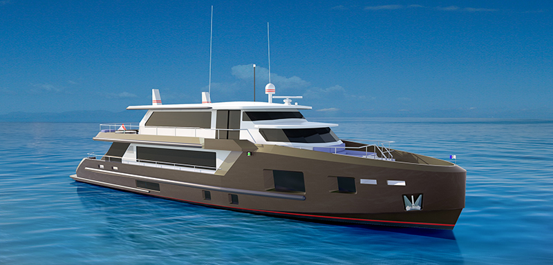 This is our most advanced hull to date, featuring exceptional seakeeping, over double the range of stability required by International Classification Societies, and of course she is super fuel efficient, with all the hull technology and advantages you can expect from one of our designs.